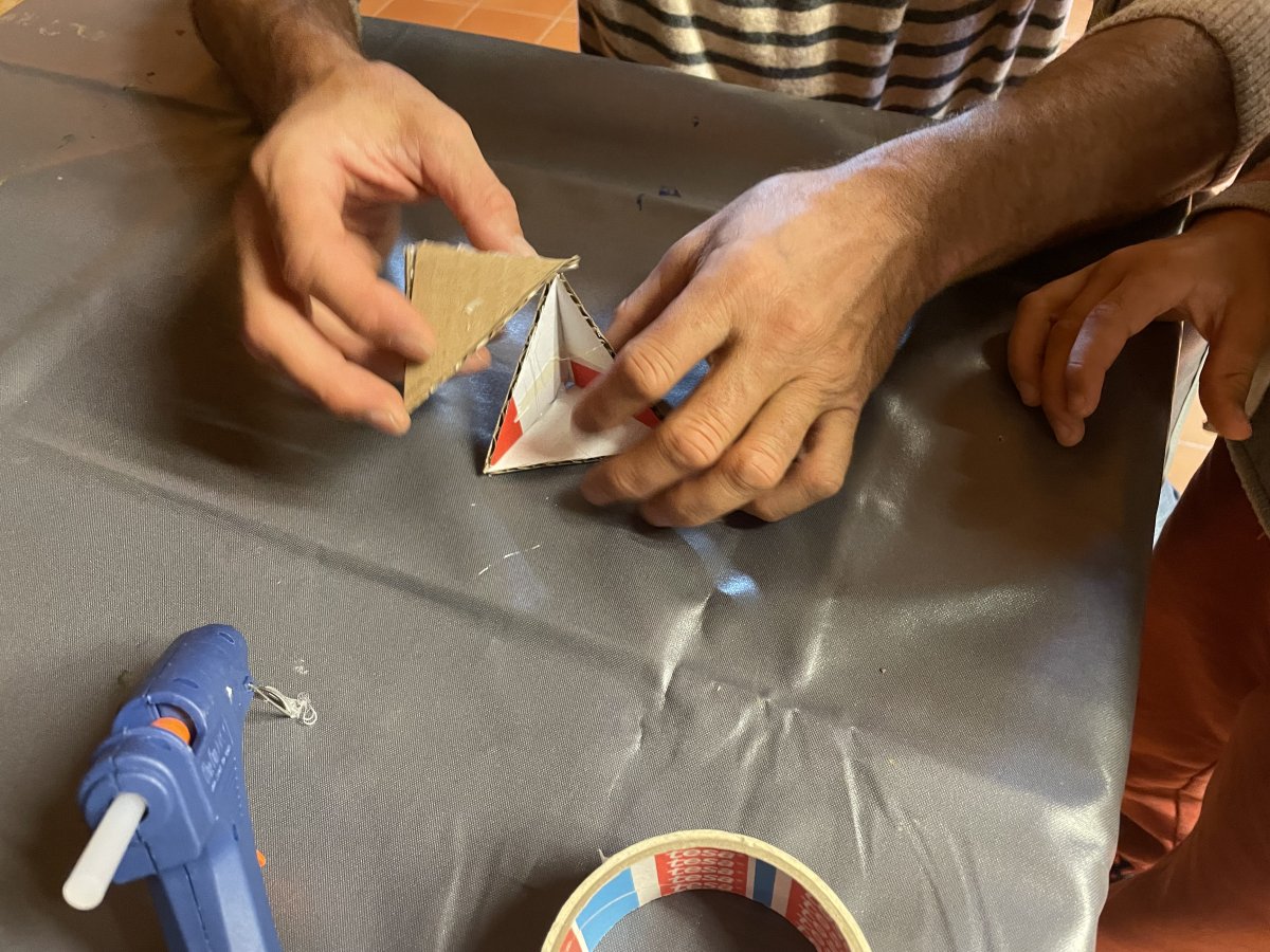 Kit imprimé en 3D, élastiques, carton et gouache. Diverses animations de cet atelier ont eu lieu à Fribourg ( MEMO ), Bussigny ( CRAB ) et Lausanne.